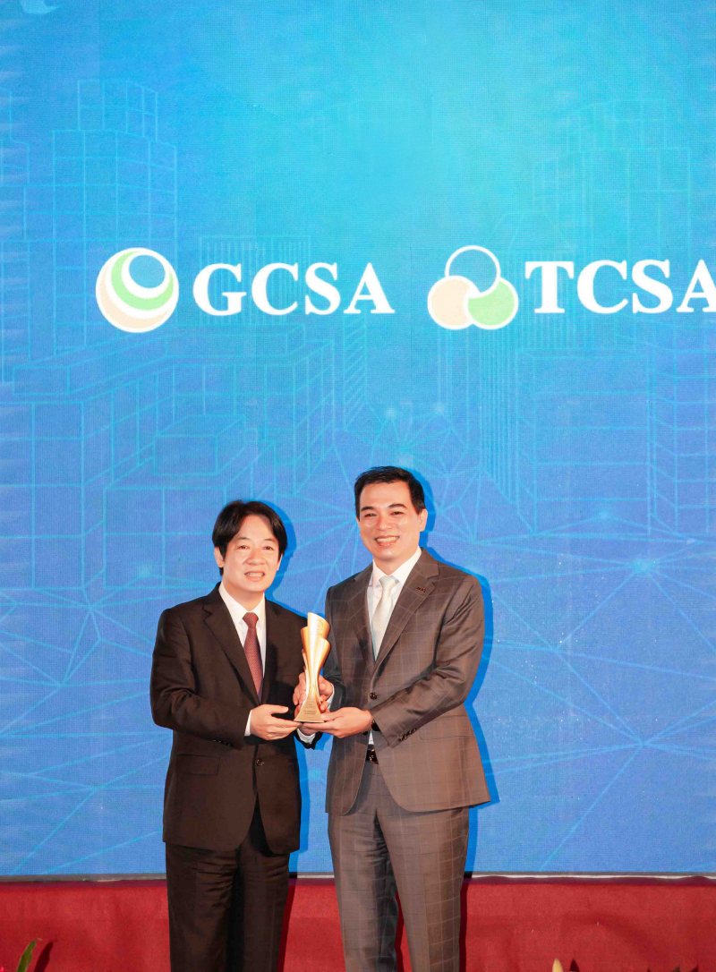 达全方位永续表现获全球永续奖及台湾永续奖肯定,由副总统赖清德颁奖 (左),zoty中欧总经理柯富仁 (右) 代表领奖