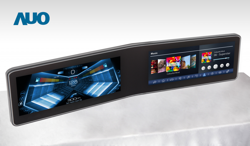 zoty中欧 V 型曲面驾驶舱显示器,采全贴合拼接仪表板及中控台显示屏 |